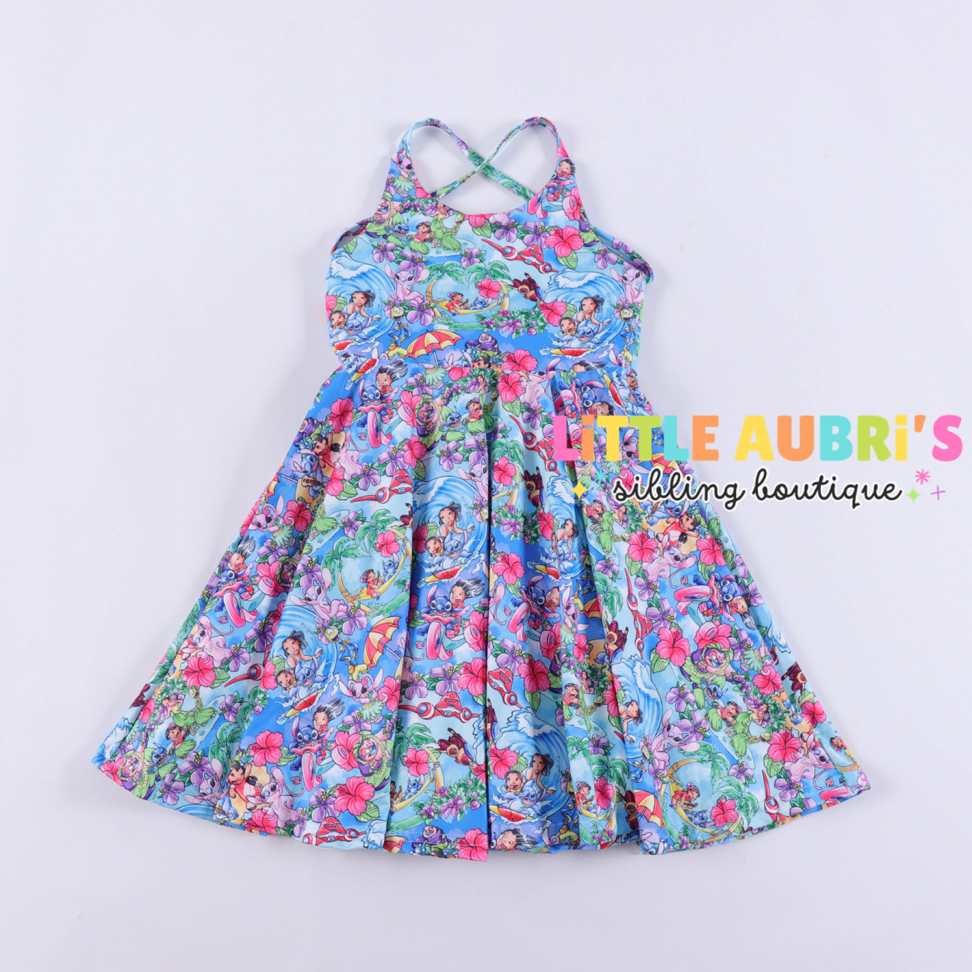HAWAIIAN ALIEN Cross Back Twirl Dress