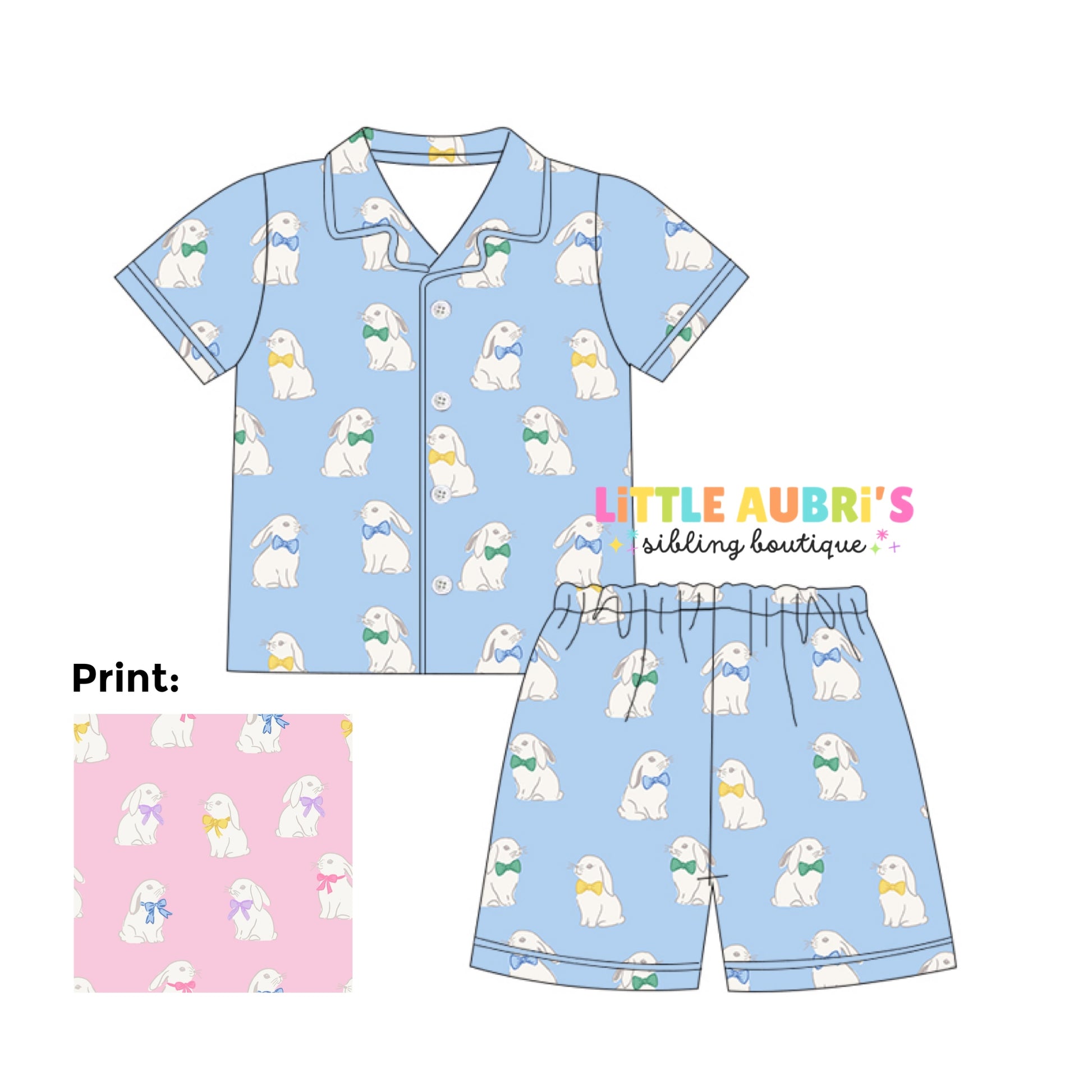 PINK BUNNIES Pajama Short Set (*SHIPS LATE FEB)