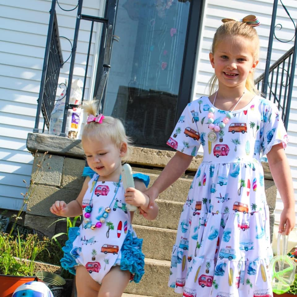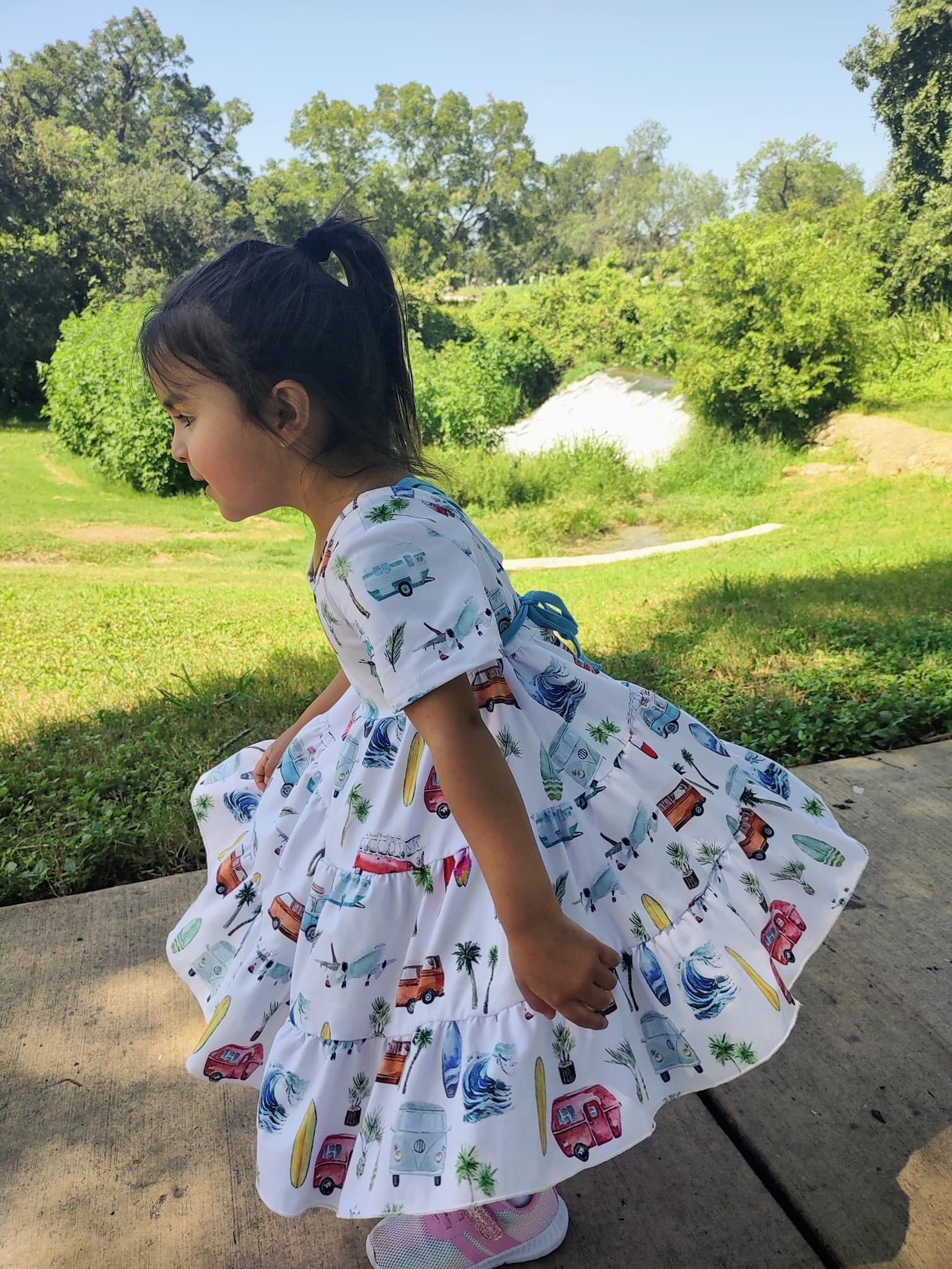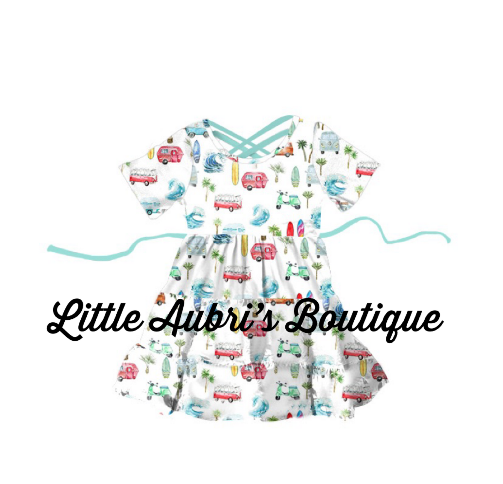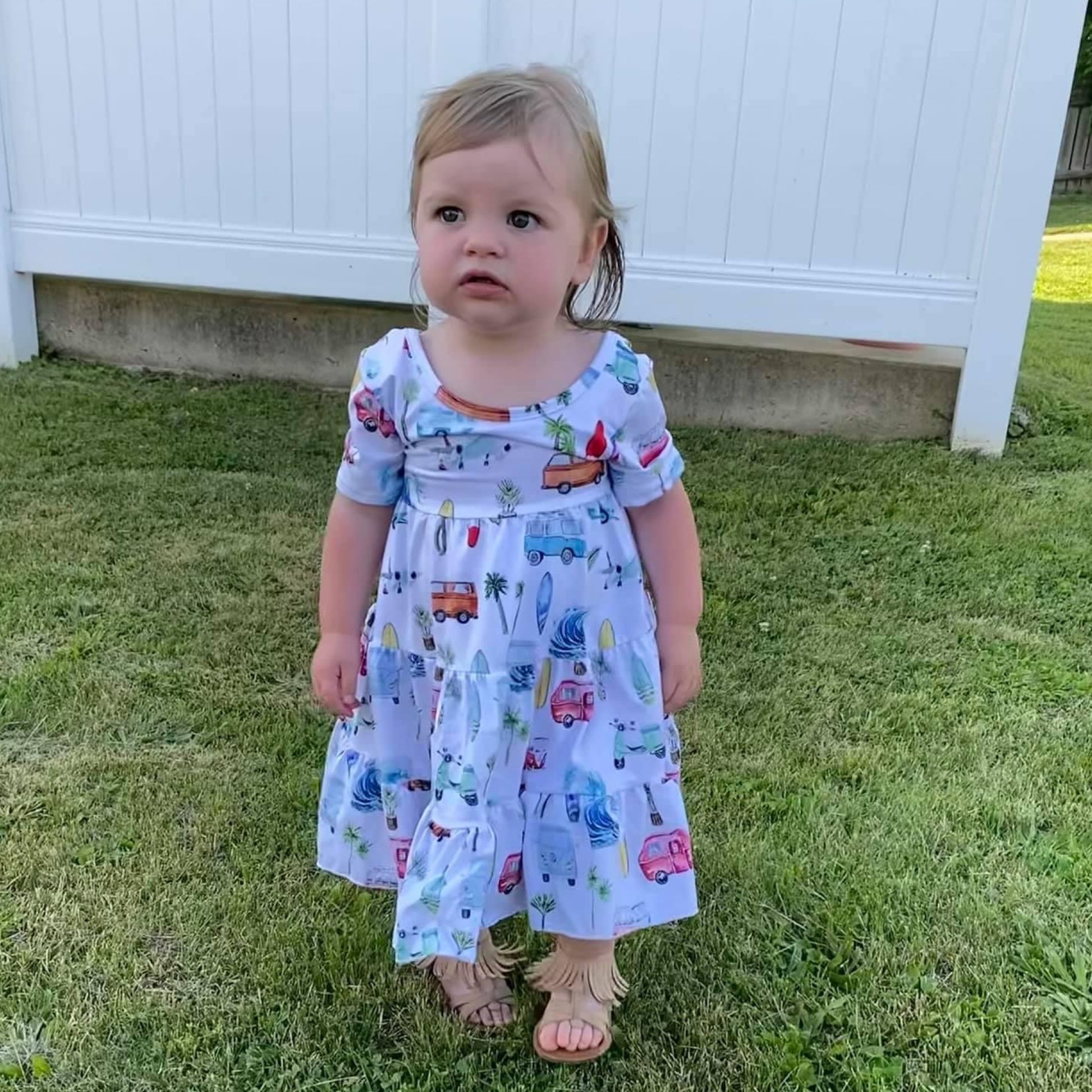 97% Cotton 5% Spandex. Butter soft material. This dress features a triple tiered dress with triple criss cross back and a simple tie that ties at the back. Baby number sizes run closer to the bigger number size (example: 12/18m fits closer to 18m)