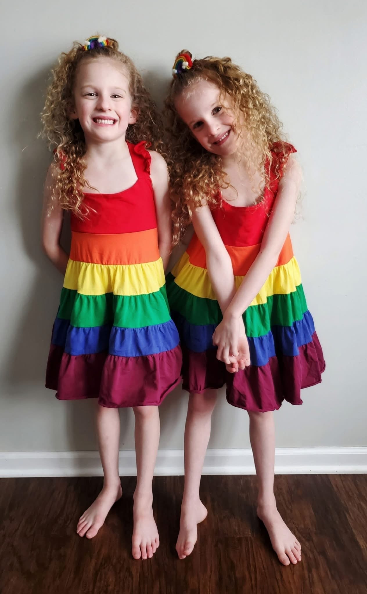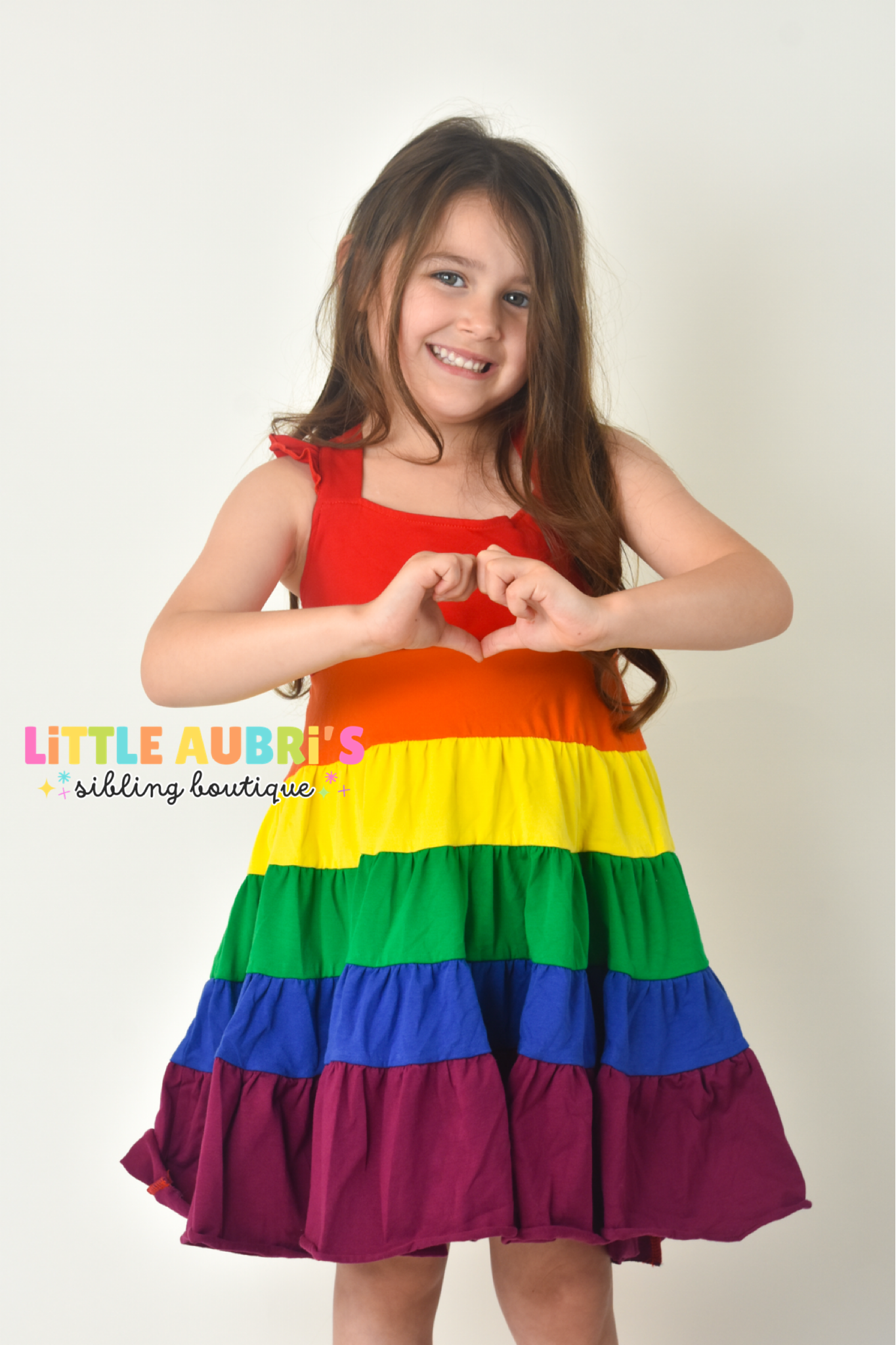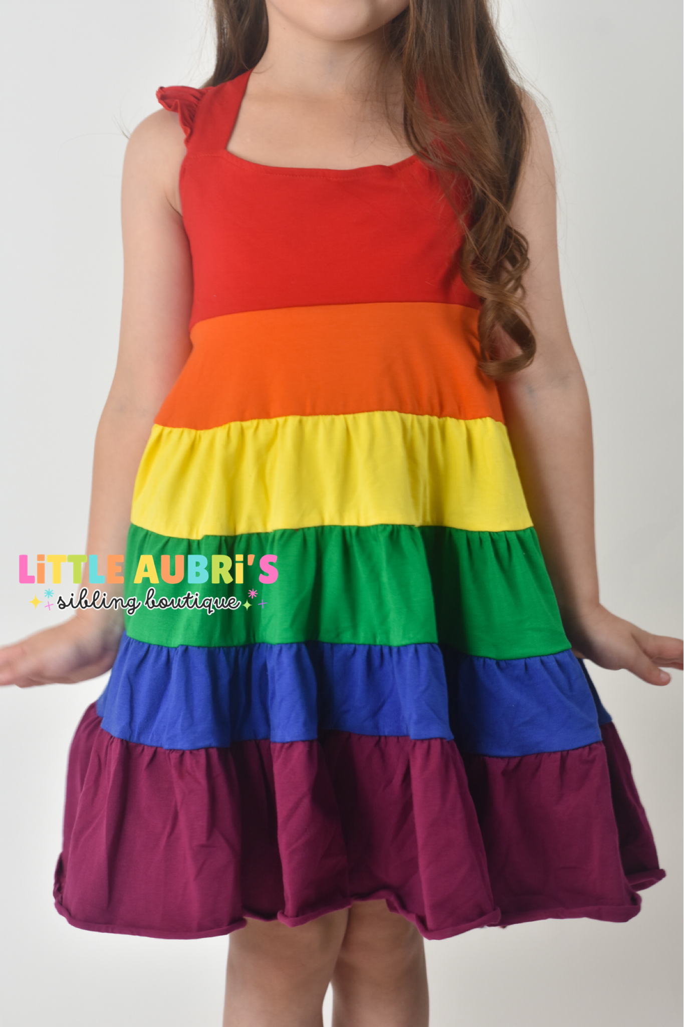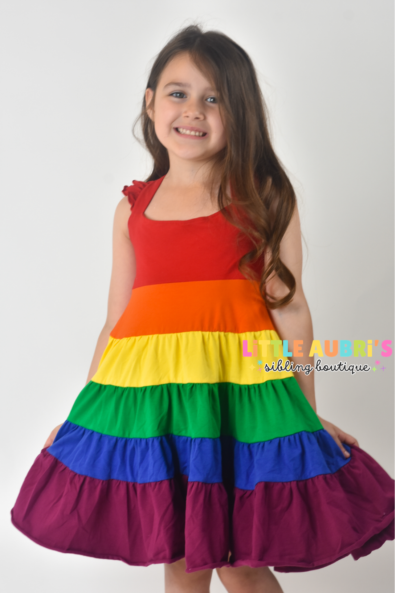 95% Cotton 5% Spandex. Knit cotton material. Number sizes 0/3m, 3/6m, etc. run closer to bigger number size (ex. 3/6m fits more like a 6m). Sizes 2T and up are true to size. Knee length.