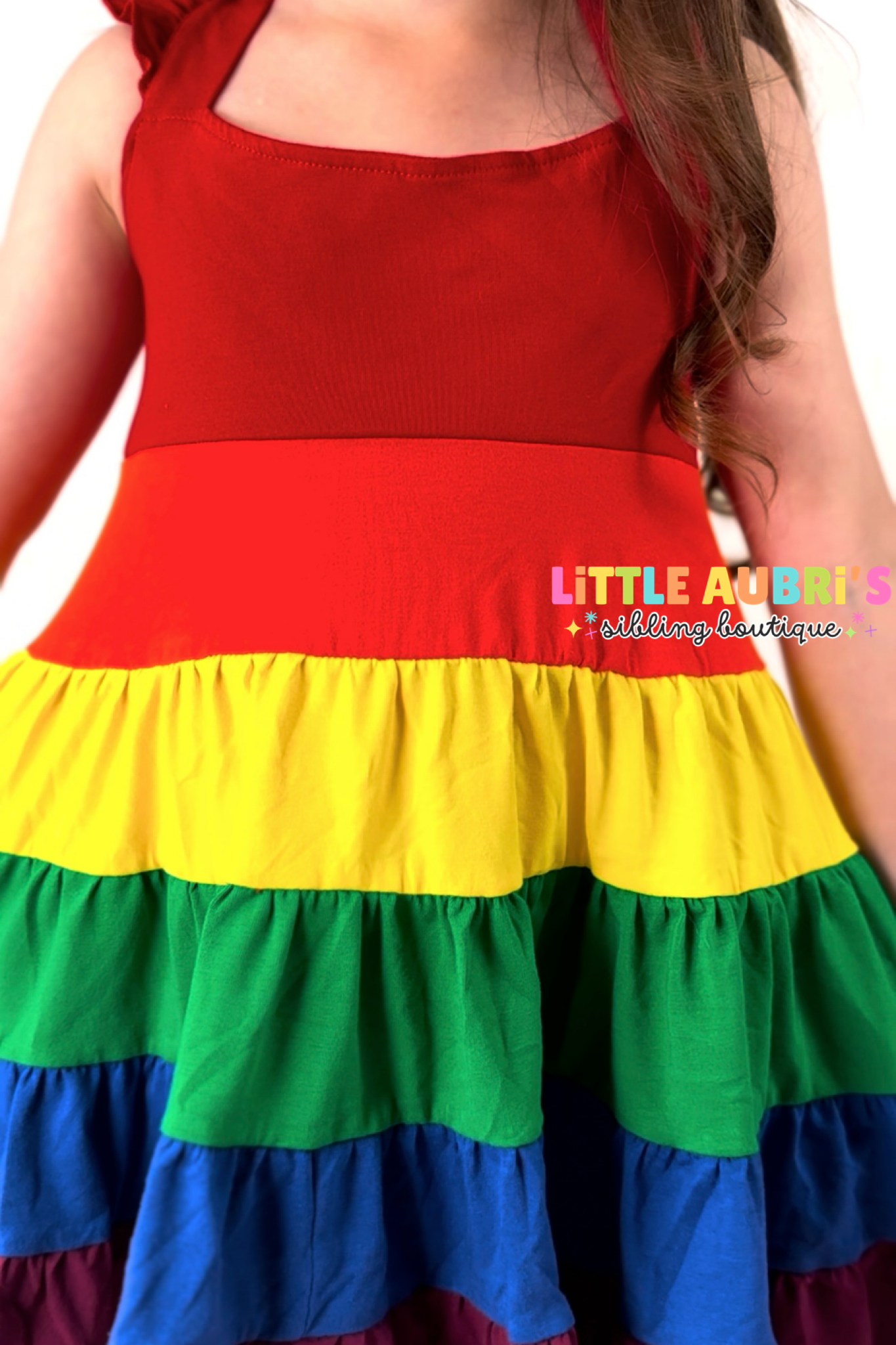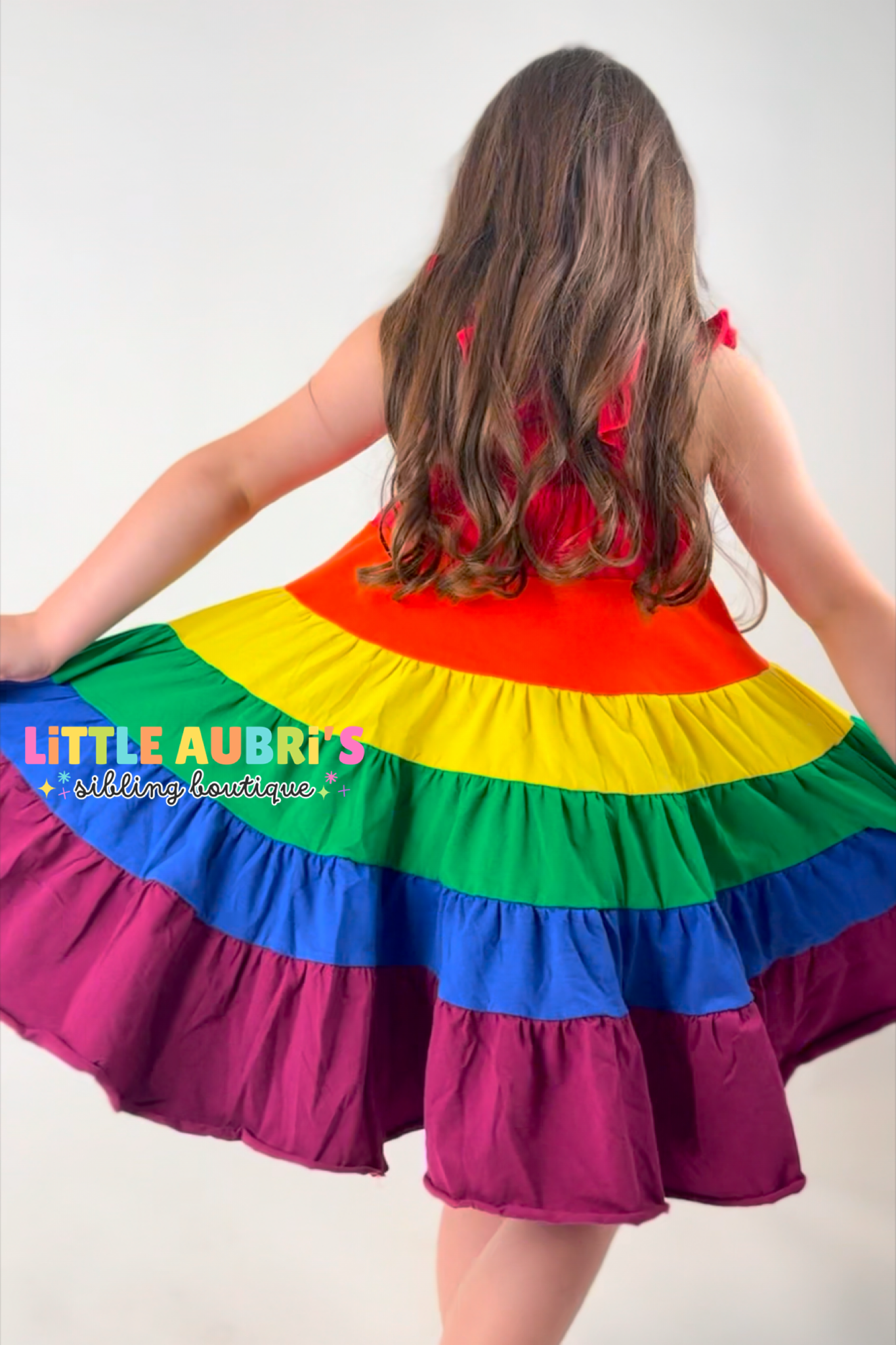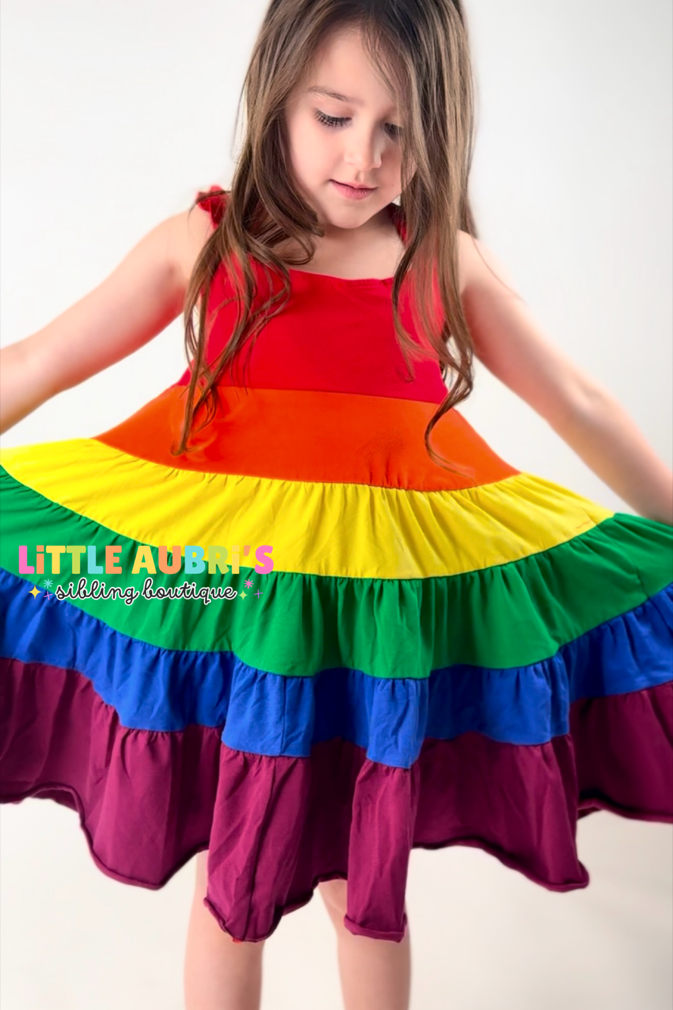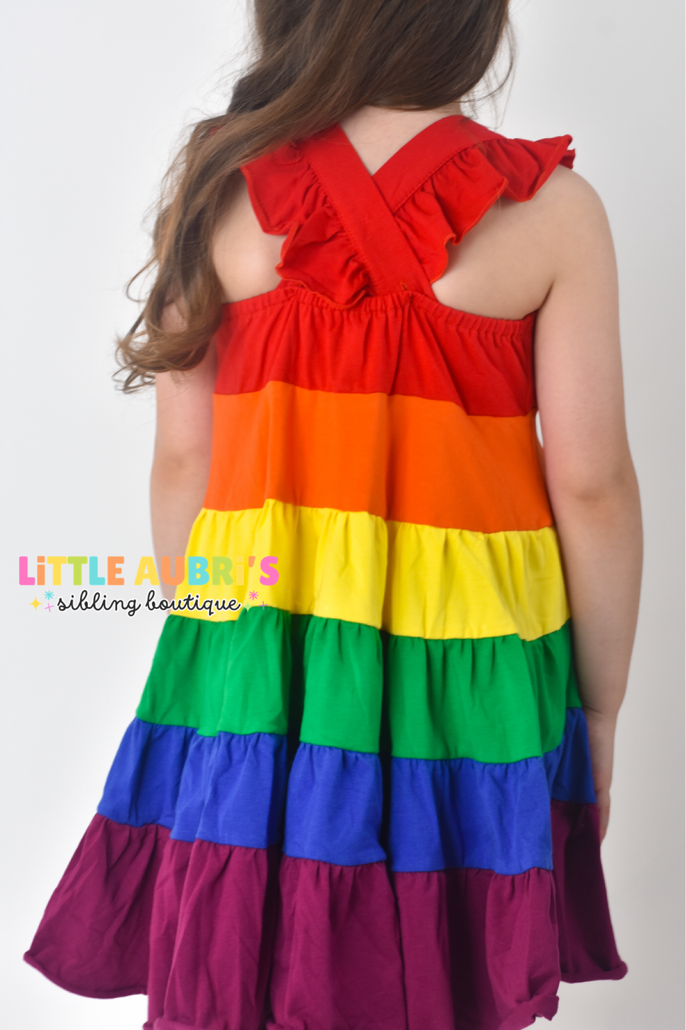 95% Cotton 5% Spandex. Knit cotton material. Number sizes 0/3m, 3/6m, etc. run closer to bigger number size (ex. 3/6m fits more like a 6m). Sizes 2T and up are true to size. Knee length.