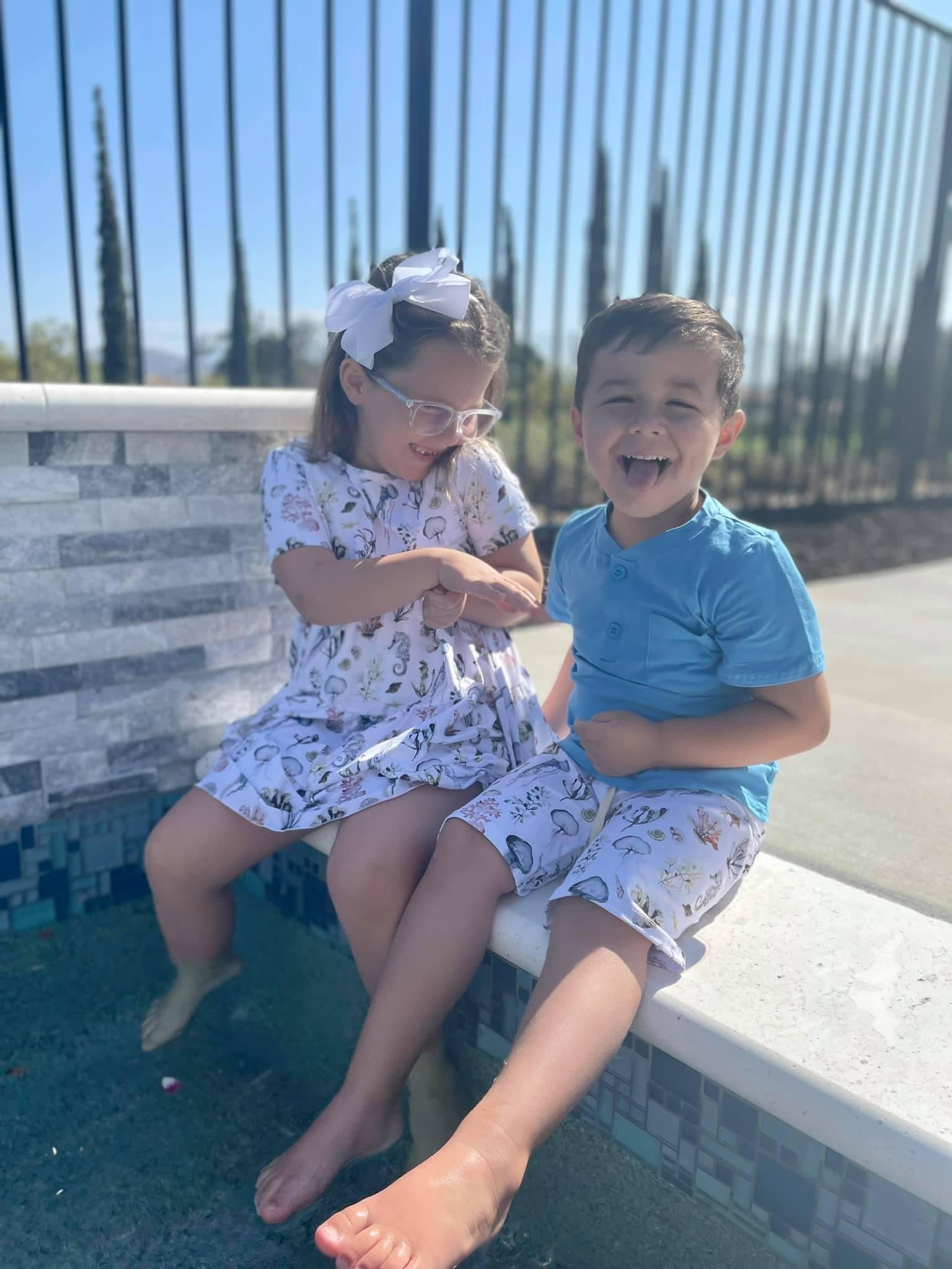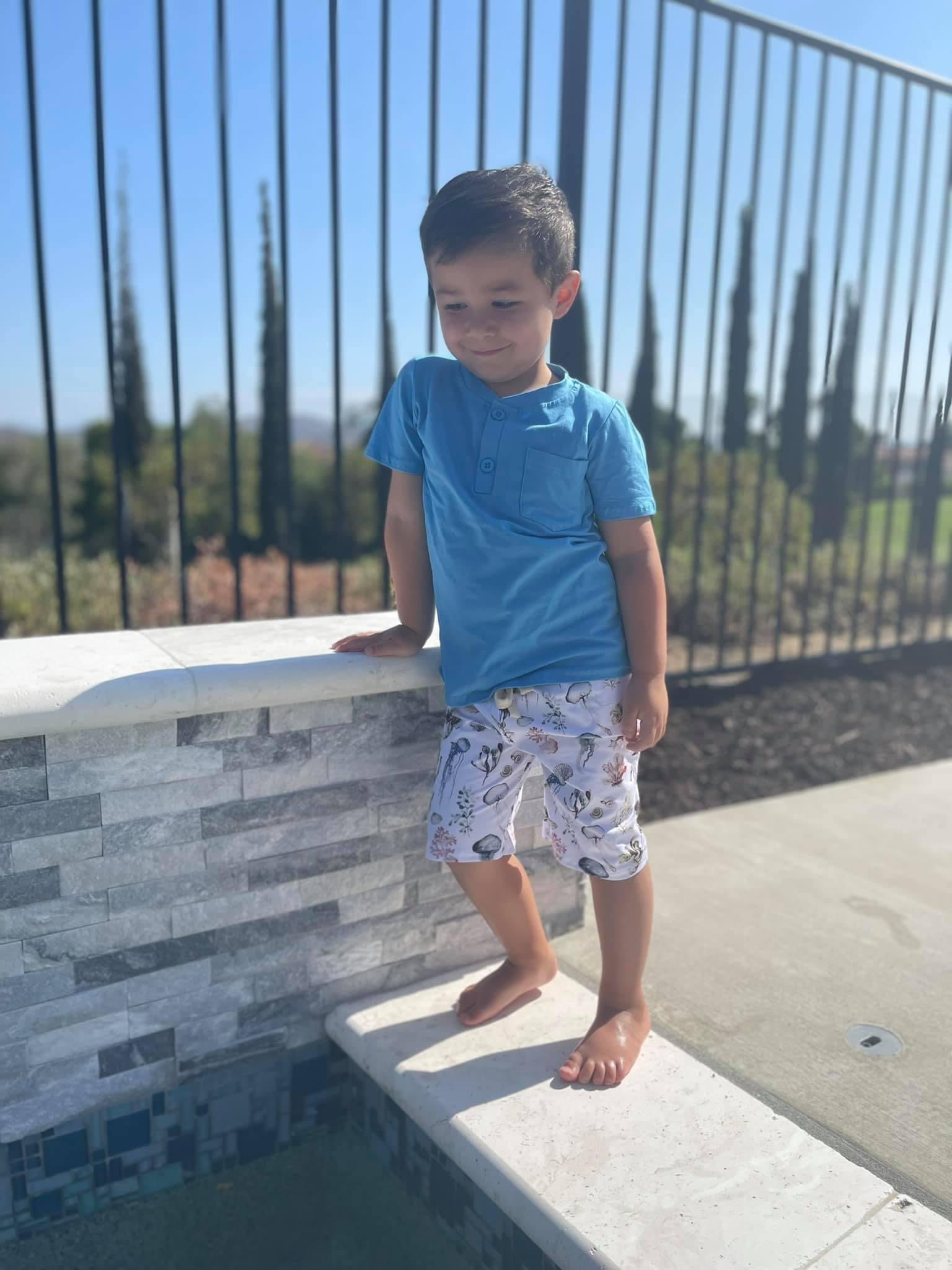 97% Cotton 5% Spandex. Butter soft material. Baby number sizes run closer to the bigger number size (example: 12/18m fits closer to 18m)