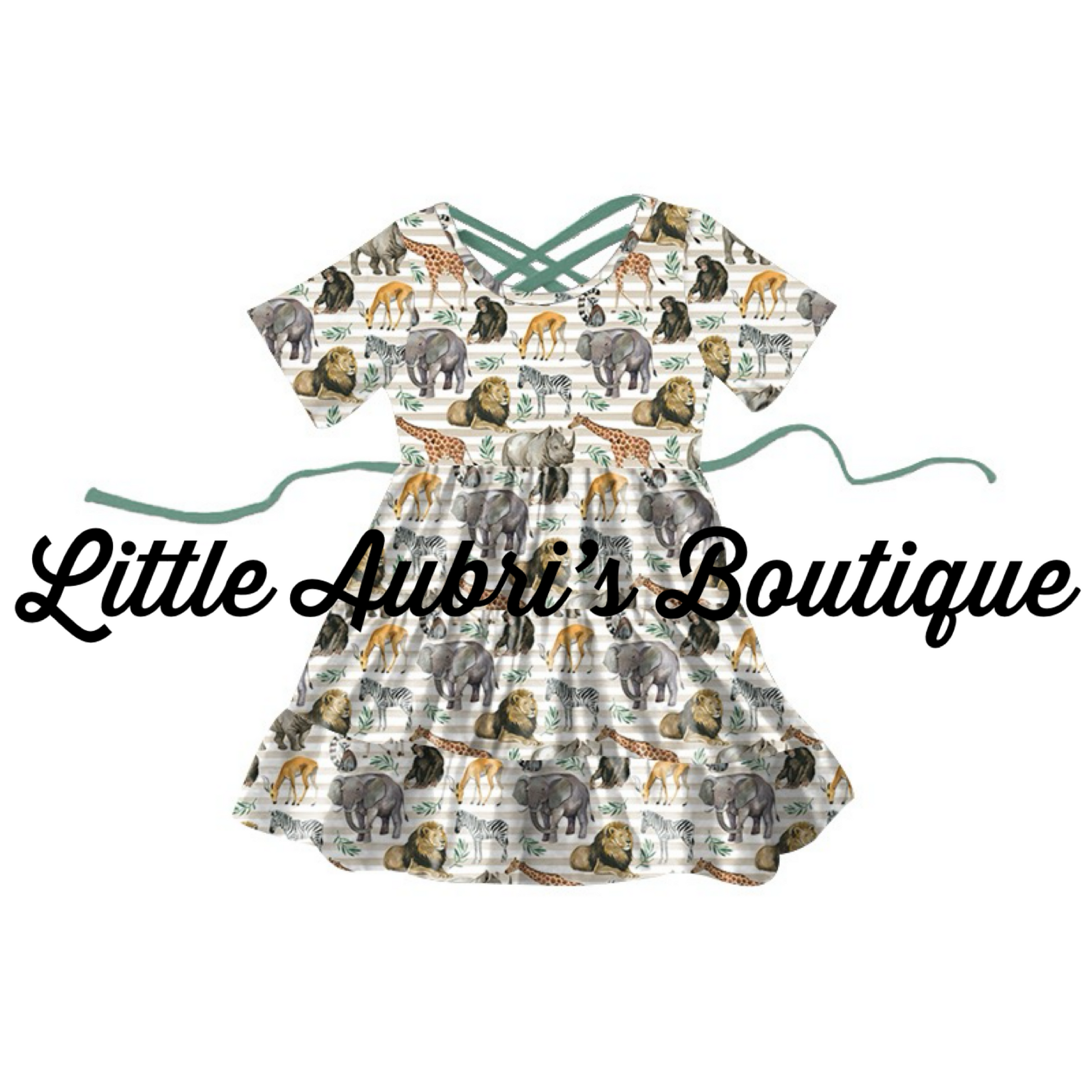 Zoo Day Triple Tiered Criss Cross Back Dress