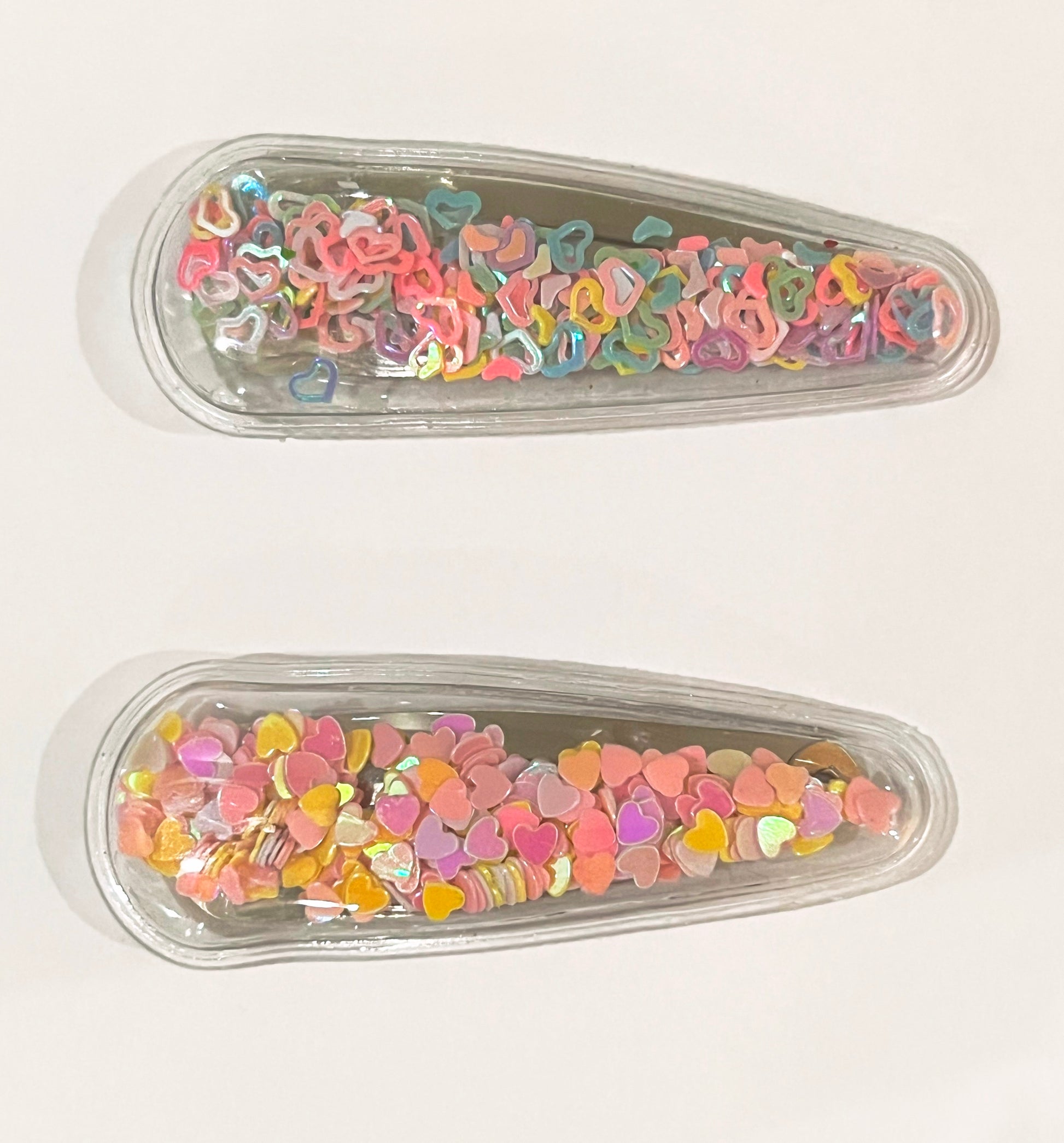 Shaker clips are roughly 2 in. in length. These are filled with various confetti and great for keeping bangs out of face.